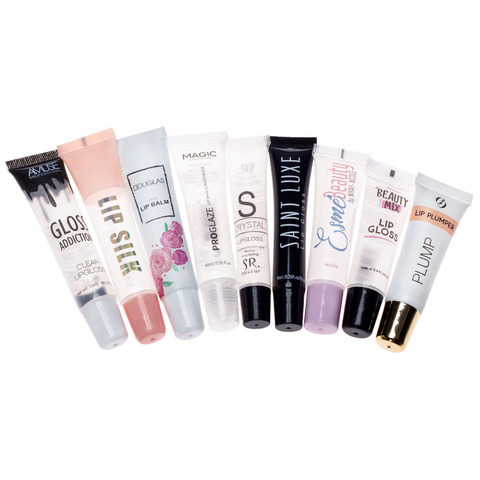 Tubo suave de plástico para apretar de 10ml y 15ml para lápiz labial, tubo de labios para apretar muestra pequeña, embalaje con cabezal de masaje de Gel de silicona